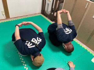 最後は後ろに手を組んで、グーっと上に伸ばします!