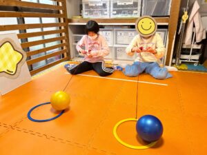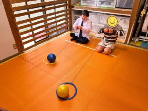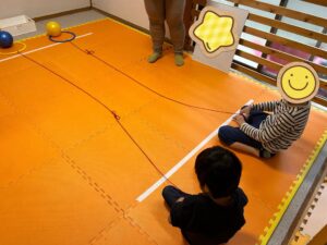 輪っかに糸がついてるので、輪っかからボールが落ちないように注意です(>_<)