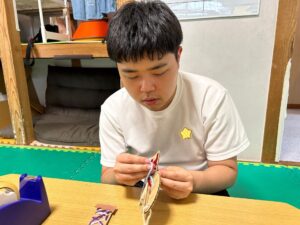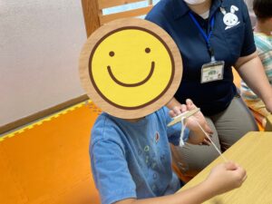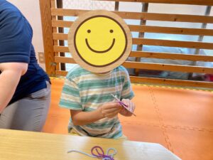 段ボールで出来たつくしに、毛糸を巻いていきます(^-^)
