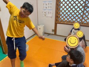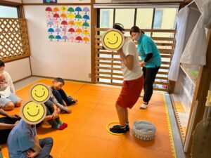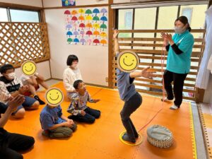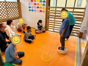 子ども達は丸椅子に立ってスタンバイしてもらいます(^^)
