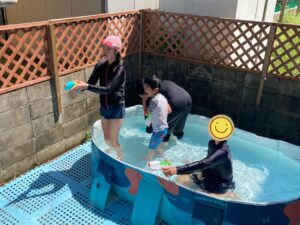 水に浮いたりバシャバシャしたり、それぞれの楽しみ方で楽しんでます(^^)