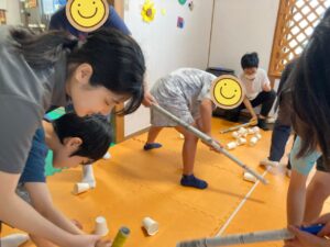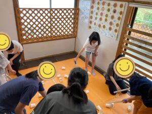 自分のグループの陣地に紙コップが少ない方が勝ちです( ´ ▽ ` )