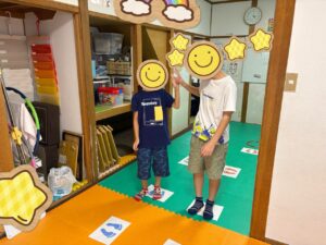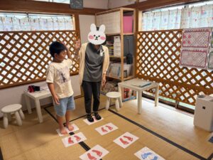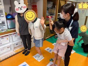 ジャンプしたら、隣のお友達とハイタッチです(^o^)