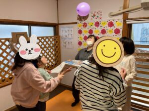 こちらは2人でペアになって、30秒間で風船を何回バウンドさせる事が出来るかチャレンジです(*^_^*)