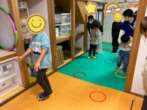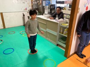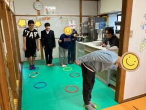 鬼が振り返った時に、フープの中に入ってないといけません(^o^)