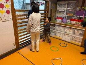 今日の活動は、「フープだるまさんが転んだ」でした!