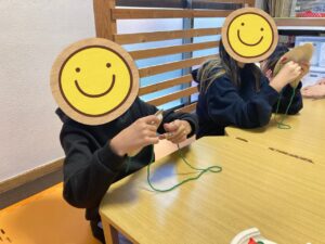 毛糸を通す順番を一緒に確認しながら頑張りました(*^_^*)