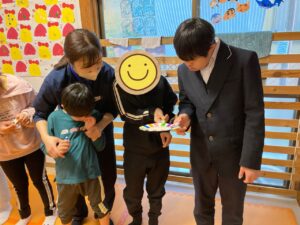 「持ったよー!」と掛け声をかけ合いながら、紙皿を運びます( ´ ▽ ` )