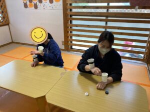 白い紙コップには白いキャップを入れていきます( ´ ▽ ` )