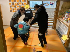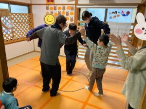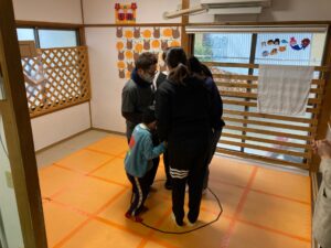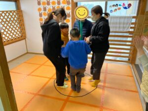 「そーと!」と言われたら、黒い線の外にジャンプです(^o^)