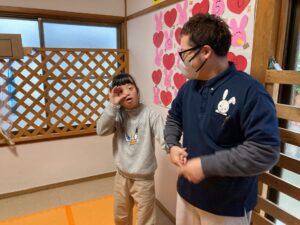「だるまさんが怒った!」の表現をしてくれてます(*^_^*)