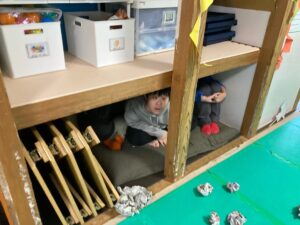 まずは、この小さい鬼を新聞紙ボールで次々倒していきます(^-^)