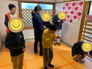 「だるまさんが◯◯した!」の言葉に合わせて、その場でポーズを取ってもらいます(^-^)