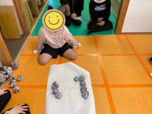 今日の活動は、「新聞紙で文字を作れ!」でした!