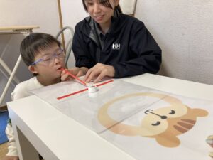 今日の活動は、「吹いて入れろ!」でした!