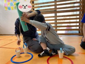 今日の活動は、「紙コップ釣り」でした!