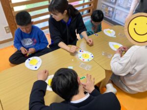 たまごの周りにシールを貼って、カラフルにしていきます( ´ ▽ ` )