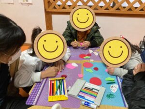 どちらからも顔が見えるように、ダルマの顔は2種類描きました(^-^)