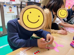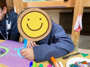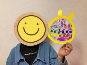 土台に耳をつけた後は、シールや折り紙などで飾り付けをしていきます(^-^)