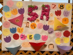 クシャクシャにした花紙は、「5月」の部分に貼り付けていきました♪